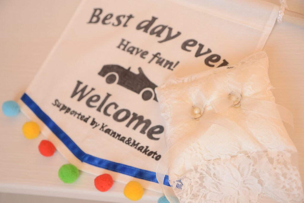 館内はウェルカムカーを始め、かわいい手作りのアイテムもおふたりらしさであふれていました!