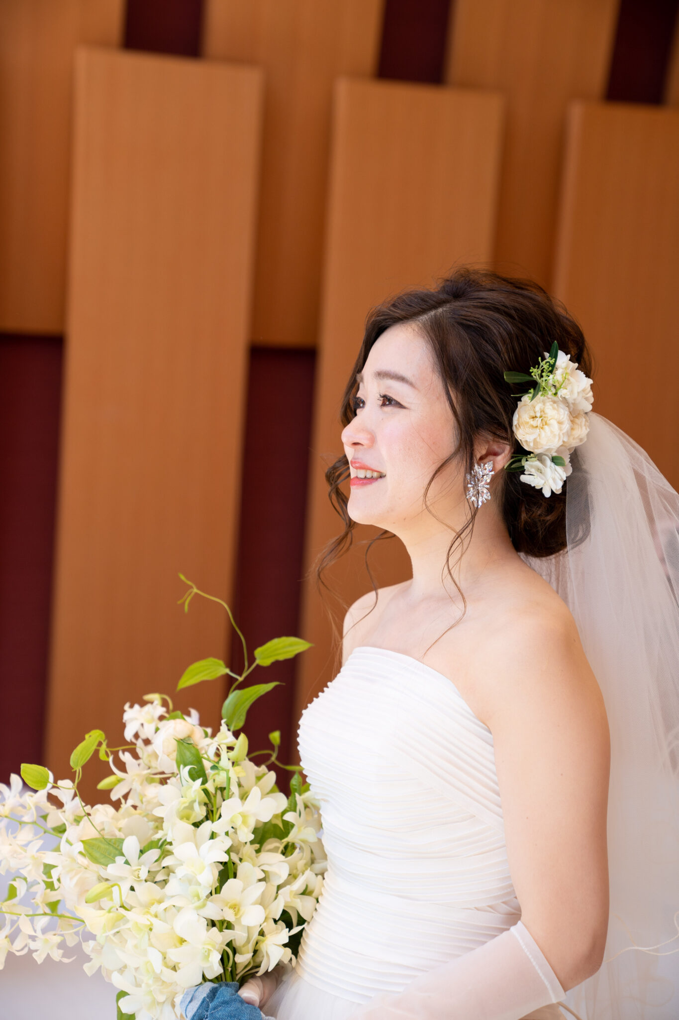 華やかなヘアフラワーが花嫁様の美しさをより惹き立てます。