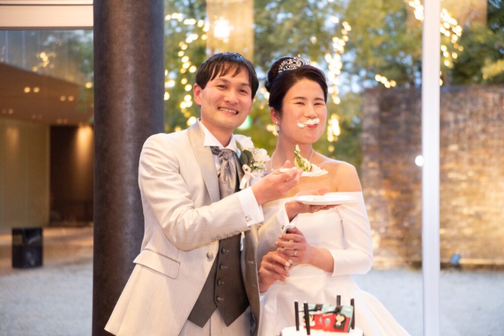 おふたりがケーキを入刀した後は、両家の親御様にお手本バイトをしていただきました!