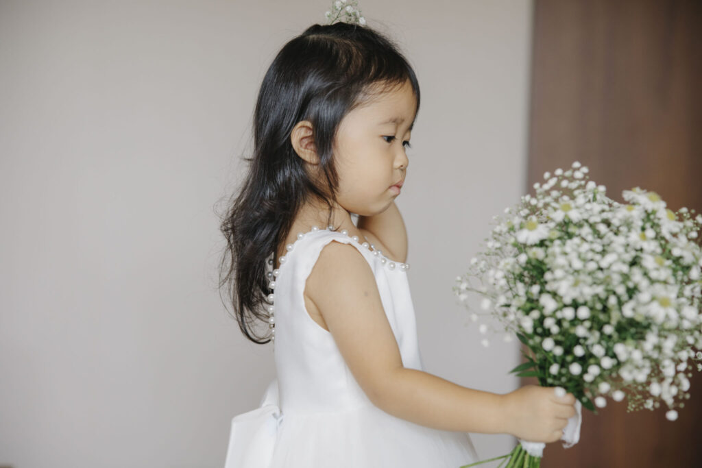 ママのかすみ草のブーケに合わせて、かすみ草のヘッドドレスをつけました♡