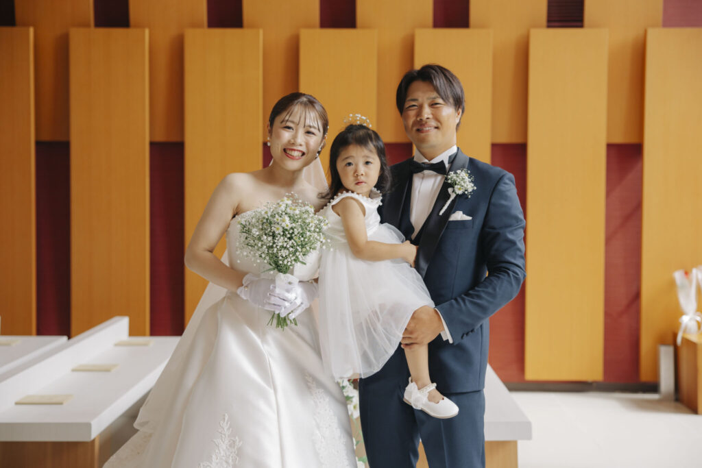 3才のかわいい娘さんと一緒に迎えた結婚式。