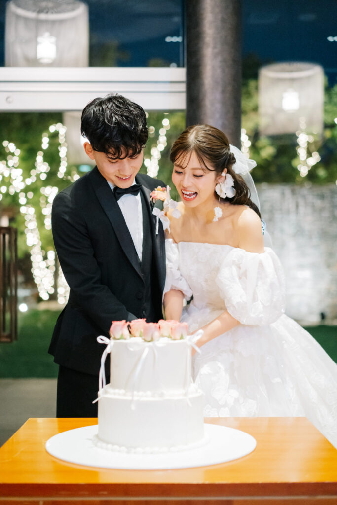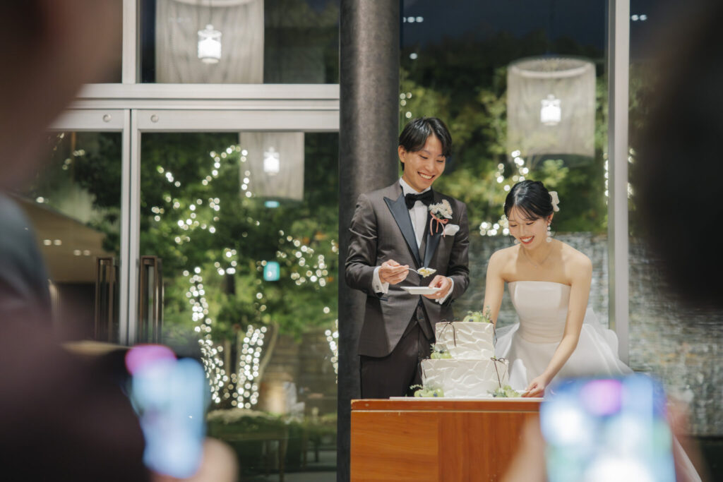ケーキ入刀、ファーストバイトもキラキラの中で叶います![]()