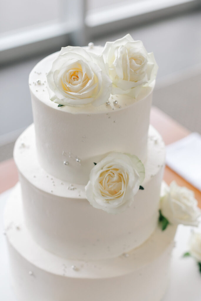 おふたりのウエディングケーキは、綺麗な純白のケーキです