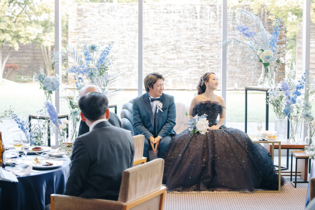 テーブルクロスもネイビーにして、会場がぐっとおしゃれな雰囲気に。