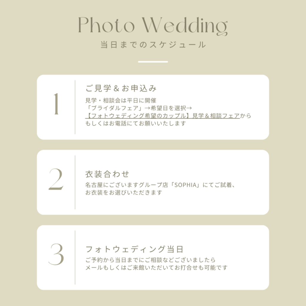 フォトウェディングの見学・相談会は平日のみ開催しておりますが、